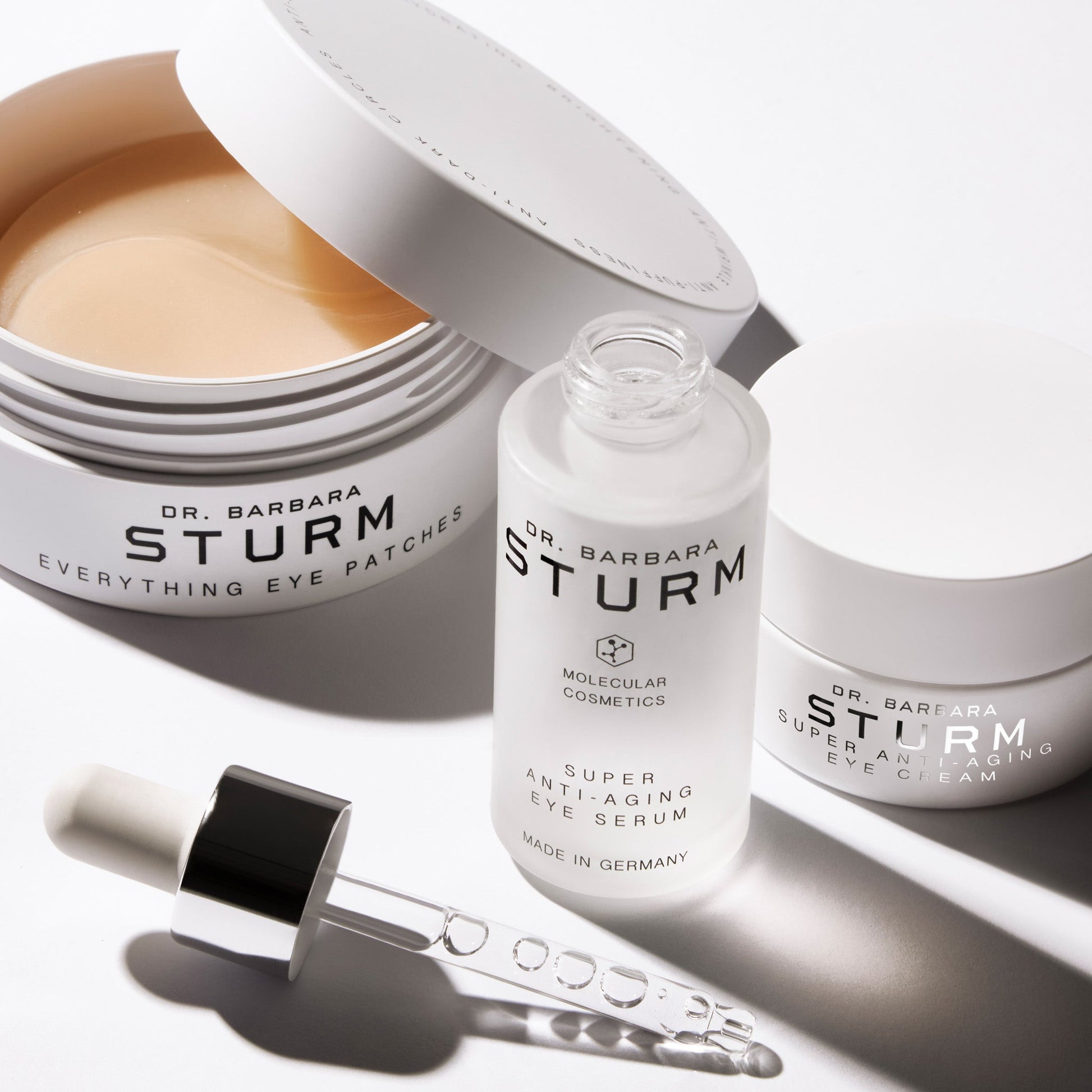 Dr. Barbara Sturm's Everything Eye Patches are an all-in-one innovation for the entire eye area and work instantly to hydrate, refresh and revitalize tired eyes, whilst reducing the appearance of dark circles, puffiness, fine lines, and wrinkles. The patches are formulated with a powerful, advanced ingredient hydrogel concentrate enriched with Avocado Polyphenols, Triple Hyaluronic Acid, Vegan Collagen and Ceramides that target every eye concern. They have an instant and visible revitalizing effect, leaving tired eyes feeling soothed, restored and re-energized and in the long term, help enhance elasticity, replenish moisture and boost skin barrier strength for youthful-looking eyes
