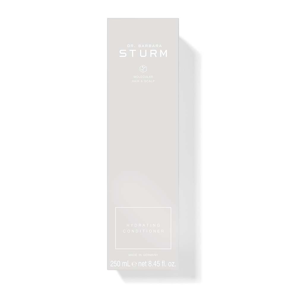 Dr. Sturm's innovative Hydrating Conditioner is an intensive conditioner for normal, stressed and damaged hair. Cationic Hyaluronic Acid and organic Shea Butter are absorbed deeply into the hair fibres to provide long lasting softness, suppleness and shine for instantly manageable hair. Pro-Vitamin B5 smooths the hair's outer layer without weighing it down, reduces frizz and gives dull hair volume, fullness and vitality. Sunflower Sprouts Extract and Tara Extract protect against heat, impurities, UV stress and color fade. The result is strengthened, healthy hair with a silky, soft shine.