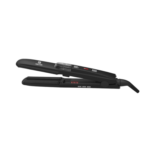 The Hair Talk Aroma Mist Hair Straightener combines advanced straightening technology with a unique aroma mist feature, providing a smooth, frizz-free finish while infusing your hair with a subtle, refreshing scent. Its ceramic plates ensure even heat distribution, minimizing damage and maintaining hair health during styling. Designed for expert control, this straightener allows precise temperature adjustment to suit all hair types, delivering professional-quality results at home. With its innovative aroma mist, it enhances the styling experience by keeping hair fresh and gently scented throughout the day. Ideal for those seeking both effective styling and a touch of luxury in their hair care routine.