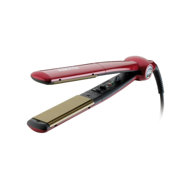 The Hair Talk Gamma Piu Red Hair Straightener combines advanced ceramic technology with adjustable temperature settings to deliver precise styling control. Its rapid heat-up feature ensures efficiency, while the smooth plates reduce hair damage by evenly distributing heat. Perfect for achieving sleek, straight styles or soft waves, this tool offers professional results for all hair types, enhancing shine and softness with every use.