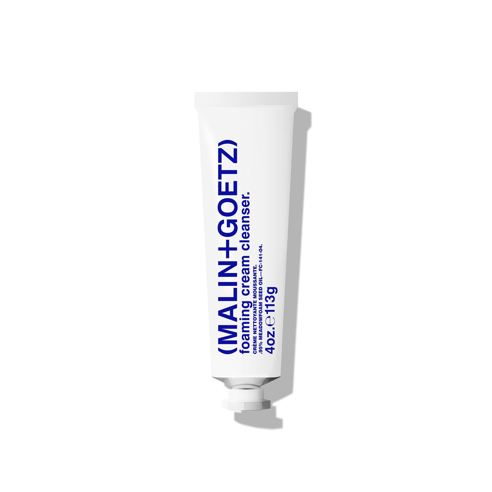 malin+goetz's Foaming Cream Cleanser, a daily cream-to-foam cleanser that effectively lifts makeup, dirt, and excess oil, leaving skin feeling soft + hydrated. The cream-to-foam texture deeply cleanses with gentle surfactants derived from coconuts + ceramide-rich glycolipids from ferments without stripping the skin's natural oils, never leaving skin feeling tight or dry. Infused with comforting jojoba milk, fatty acid-rich nutrients, and nourishing prebiotics, this multitasking cleanser maintains skin's essential hydration levels keeping it feeling comfortable + perfectly in balance. Ideal for those with skin on the drier side but suitable for all skin types, especially sensitive.