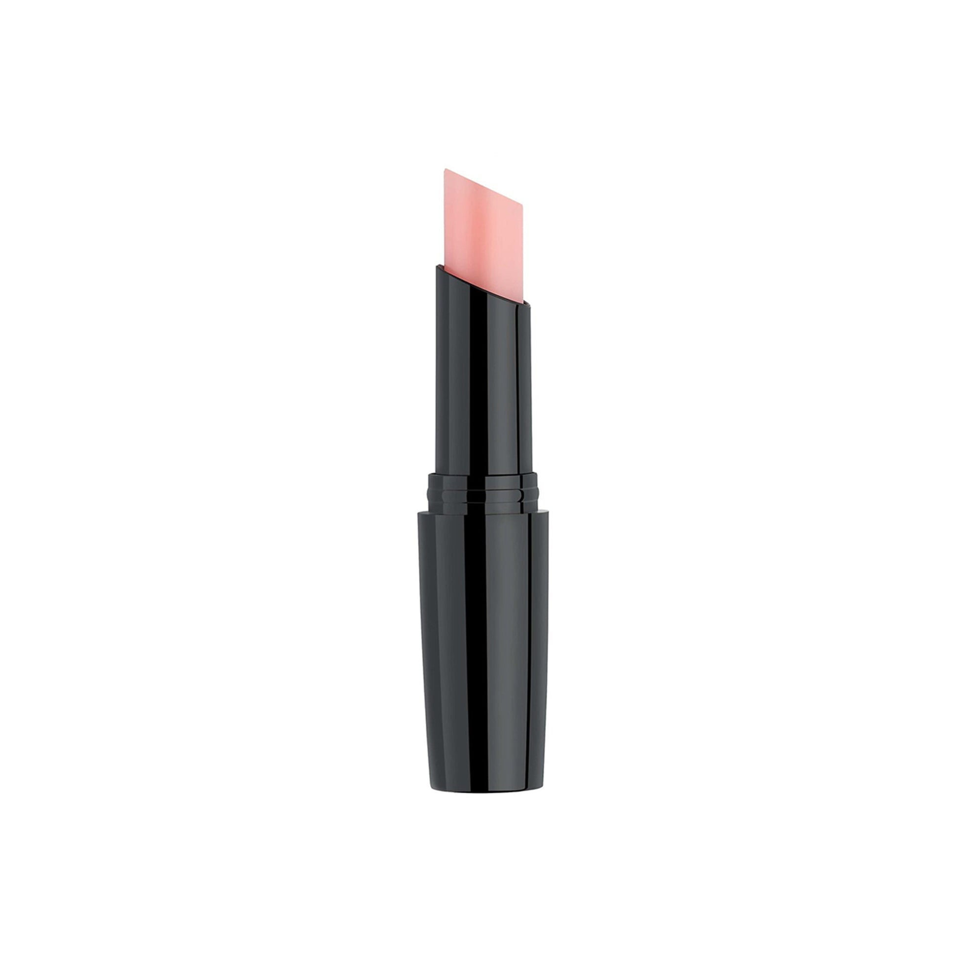 - Self-colouring pigments enhance lips in natural pink tones.
