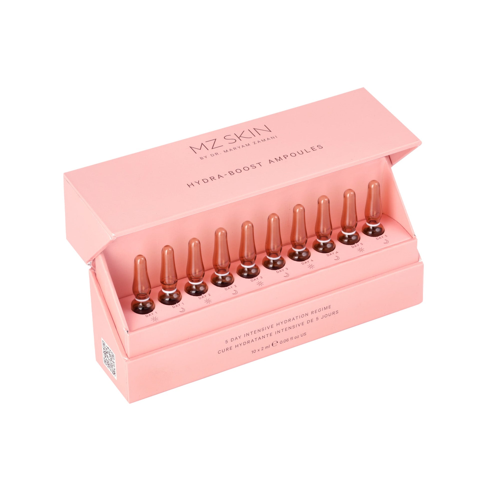 Hydra-Boost ampoules – Hydrate and soothe skin in just 5 days. This restorative 5-day programme combats stressed and dehydrated skin with 10 targeted, serum-filled ampoules (for use day and night). Each powerhouse formula is carefully designed to replenish essential moisture levels; the key to calm, balanced and glowing skin. Micro-molecules of hyaluronic acid penetrate deeply to achieve optimal hydration and reveal a youthful radiance. Soothing botanical extracts and barrier-boosting antioxidant vitamins instantly reduce inflammation while boosting the skin’s long-term defences. Plumping peptides target collagen production to visibly firm the skin and smooth fine lines and wrinkles. Use once a month for best results.