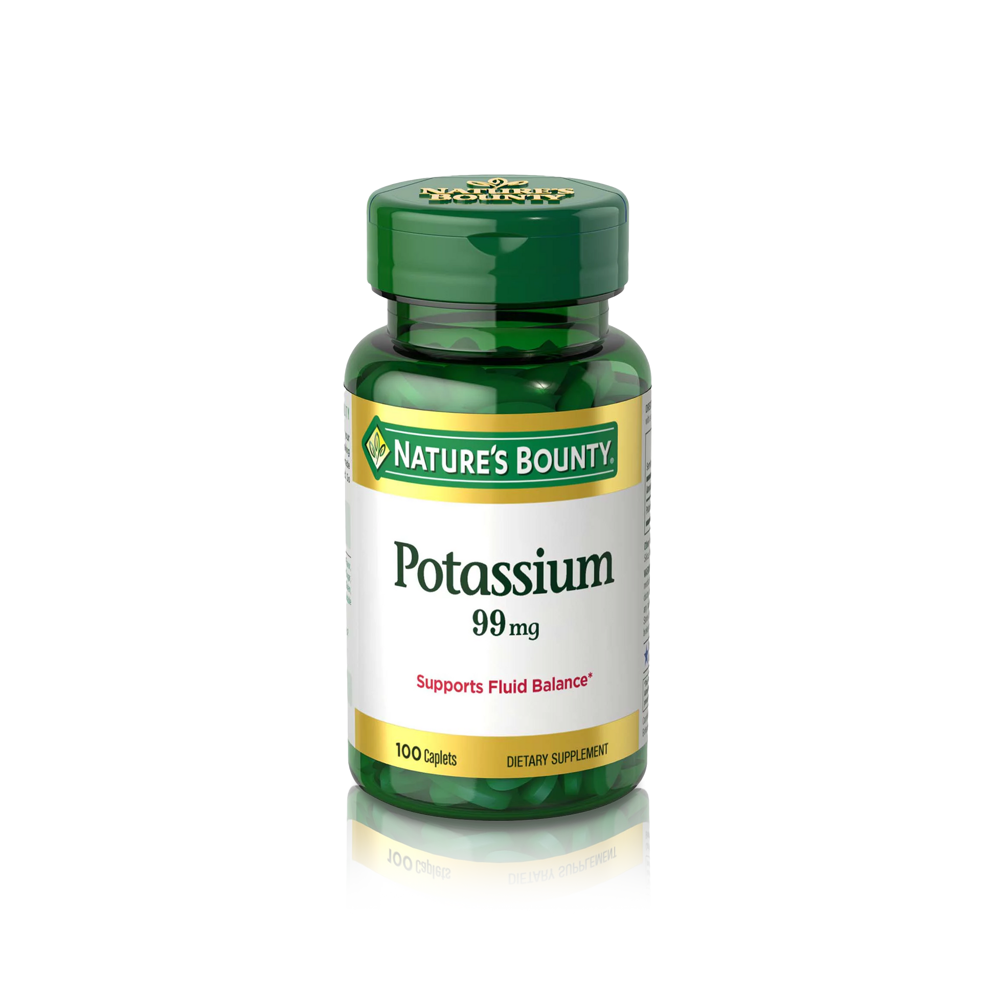 - Each caplet of Nature's Bounty Potassium 99mg contains 99mg of potassium in the form of potassium gluconate, ensuring you get the optimal dosage for daily consumption.
