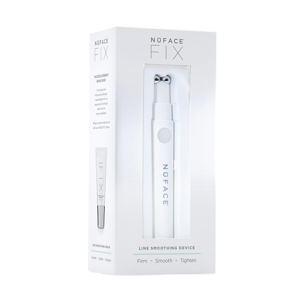 Providing gentle NuFACE microcurrent energy, the FIX Device together with the NuFACE FIX Serum, the first ionic Microcurrent Skincare formula, supercharge the treatment with active beauty ingredients that help smooth, tighten, and brighten skin.