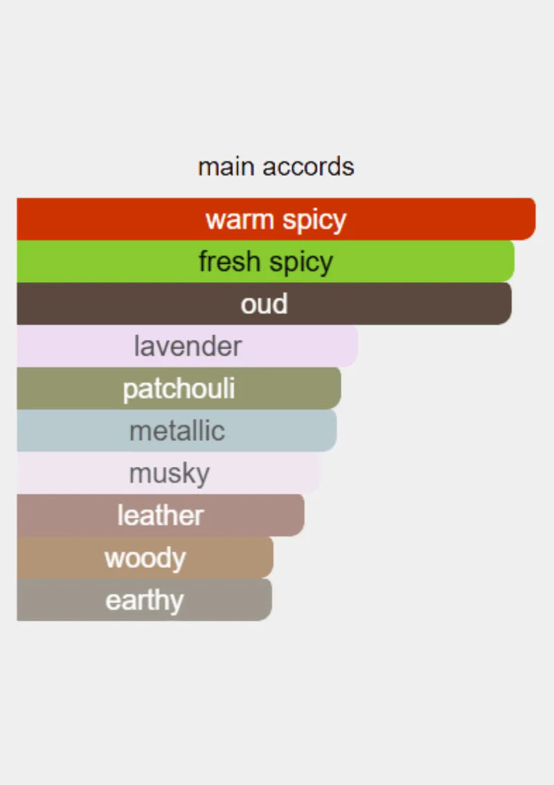 يجسّد جوهر خشب العود الطبيعي، مُعالجًا بفخامة وكثافة خام. هذه التركيبة الجريئة، المُغطاة برقةٍ من الباتشولي والمسك، تُفوح بقوة الطبيعة وتترك أثرًا من العظمة التي لا تُنكر. في هذه التركيبة، يُتقن جوهر العود ويُعالج بقوة وأناقة. يتميز العطر بتركيبةٍ آسرةٍ وطبيعيةٍ آسرة، مُعززًا بنفحاتٍ منعشةٍ من الخزامى ودفءٍ من جوزة الطيب والزعفران. عودٌ للعظمة، إبداعٌ آسرٌ ومثير، يدعونا إلى الحلم بجرأةٍ وتحويل طموحاتنا إلى واقع.