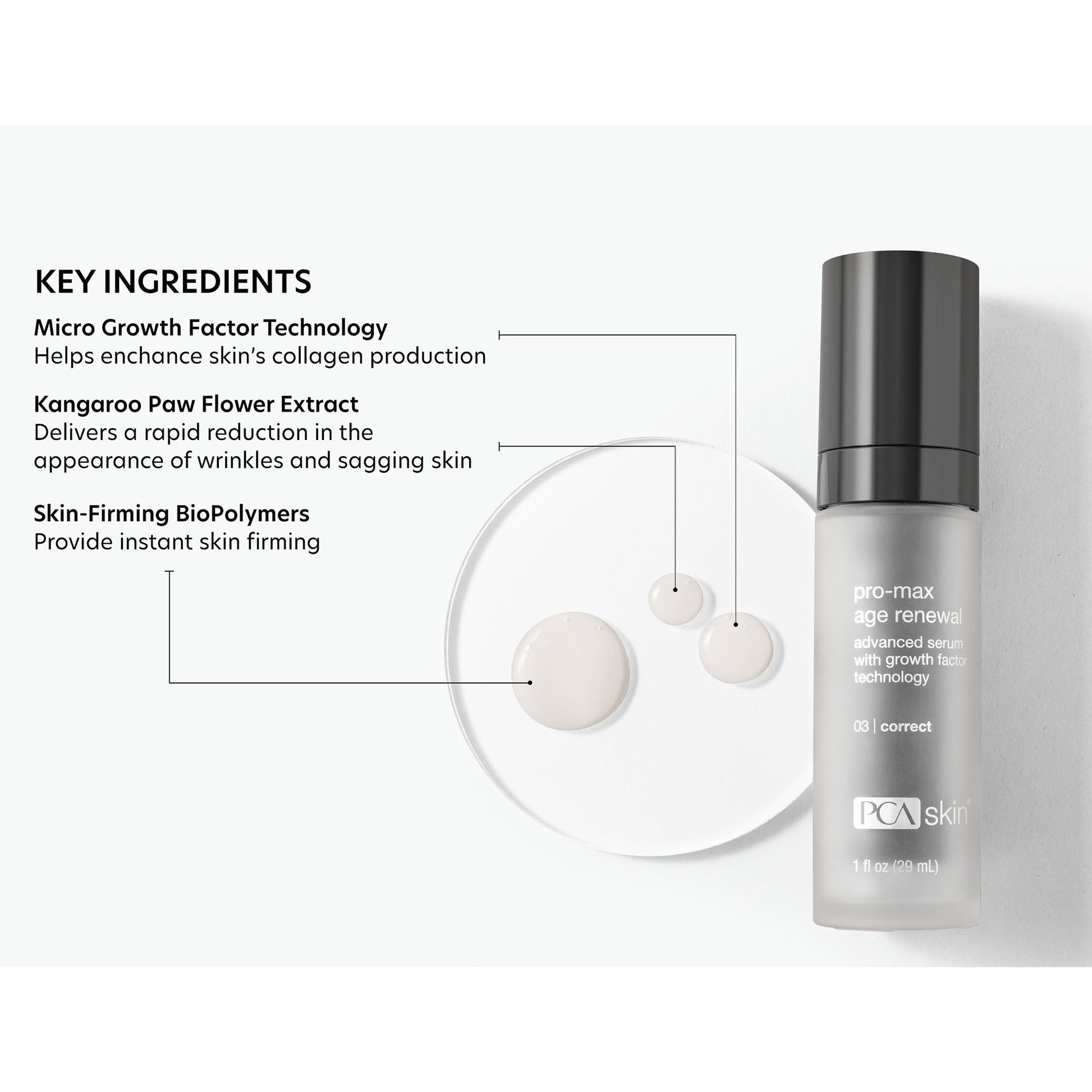 Advanced anti-aging serum clinically proven to lift and firm the appearance of skin by 60%*. While conventional growth factors sit on the surface of skin, the patent-pending Micro Growth Factor Technology (MGF) in Pro-Max Age Renewal penetrates 10x deeper than conventional growth factors** to support collagen production and reduce the appearance of sagging, loss of volume, lack of firmness, and wrinkles.(1.0 fl oz/29 mL)