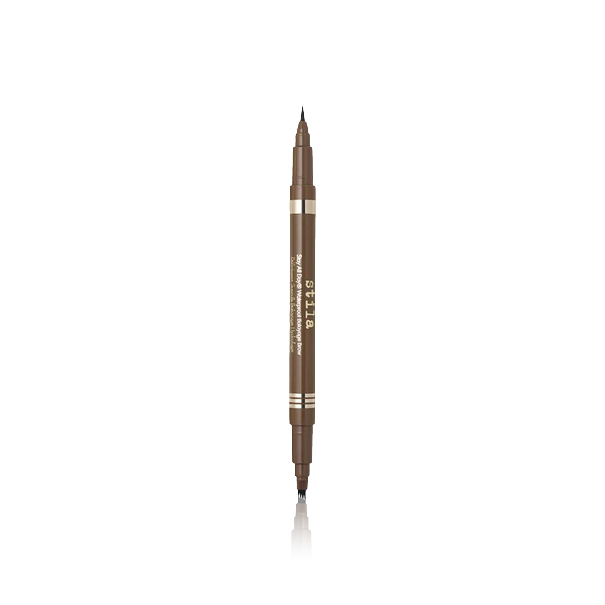 The double-ended brow pen features two complementary shades, allowing you to expertly sculpt and fill in your eyebrow hairs. On one side, the precise micro-fine, brush-tip applicator delivers Stay All Day® Waterproof Brow Color, enabling you to create hair-like strokes for a realistic finish. On the other side, the 4-prong brow applicator effortlessly fills in and blends the color into your brows, giving you perfectly groomed results.