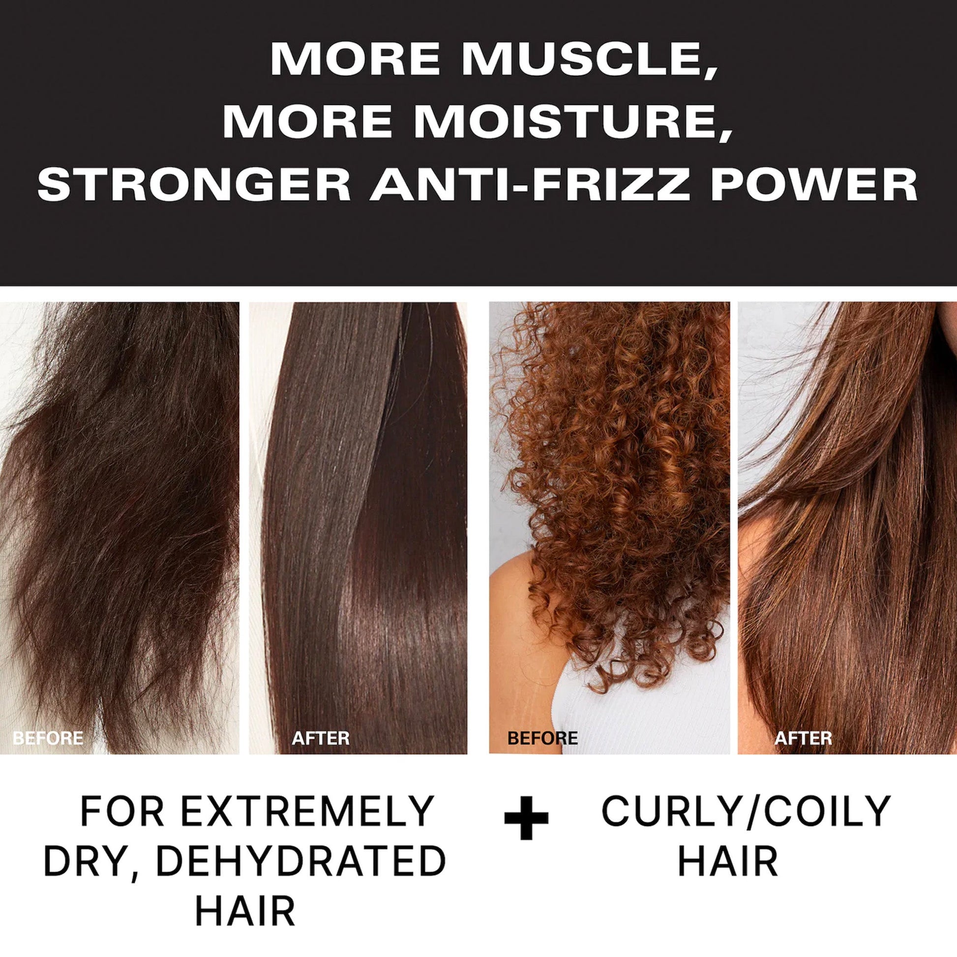 Powerful, ultra-moisturising, anti-frizz treatment keeps dry/dehydrated hair and coily/curly hair glassy-smooth, straight and frizz-resistant through 3-4 shampoos. Ground-breaking, extra-powerful, anti-frizz technology that fills dry, porous, frizz-prone hair with internal moisture, which negates this hair type's natural urge to pull in atmospheric moisture (humidity) that makes hair puff and swell.