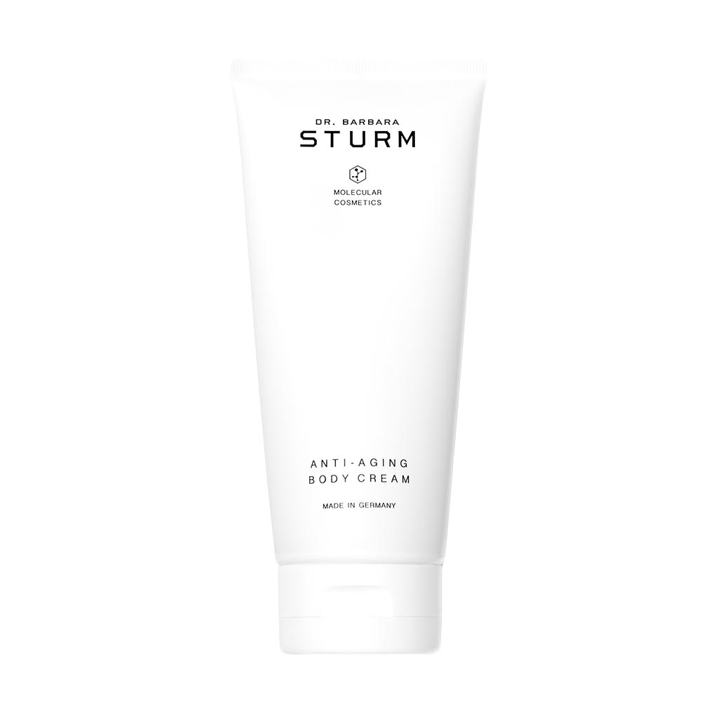 The body's skin has slower cellular turnover than the face. My ANTI-AGING BODY CREAM contains Grape Seed Oil which is high in Linoleic Acid and possesses anti-oxidative and pore refining properties. Extracts of White Almond seal moisture, while Elderberry Blossom is rich in Anthocyanin and has skin soothing properties. Cuckoo Flower Oil is packed with skin-boosting minerals, while anti-aging powerhouse Purslane is a potent anti-oxidative ingredient that also reduces the visible signs of irritation. DR. BARBARA STURM