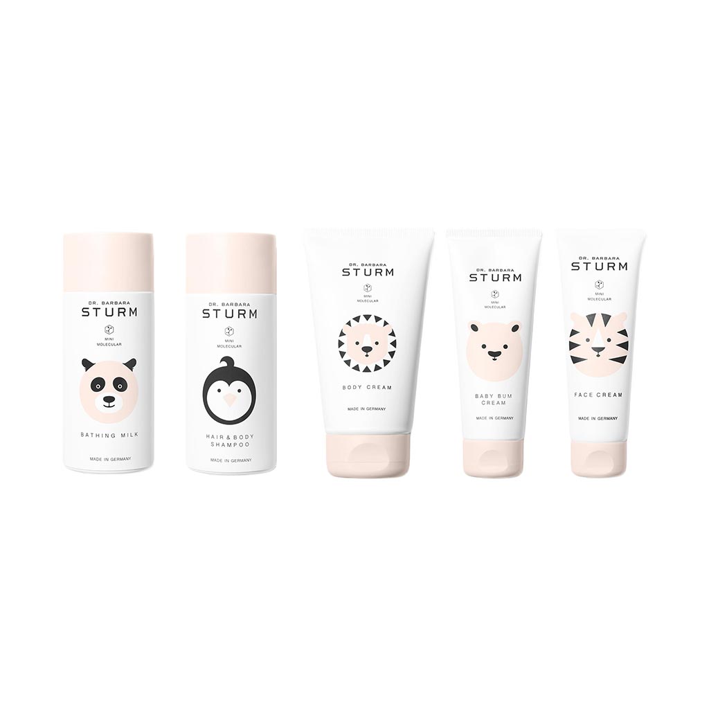 The BABY & KIDS SET includes the entire range of the Dr. Barbara Sturm Mini Molecular Collection. formulated specifically for sensitive young skin. Healthy, functioning skin starts from birth. Using non-irritating and fragrance-free products is vital to children's skin health and to promoting the natural skin's barrier function.