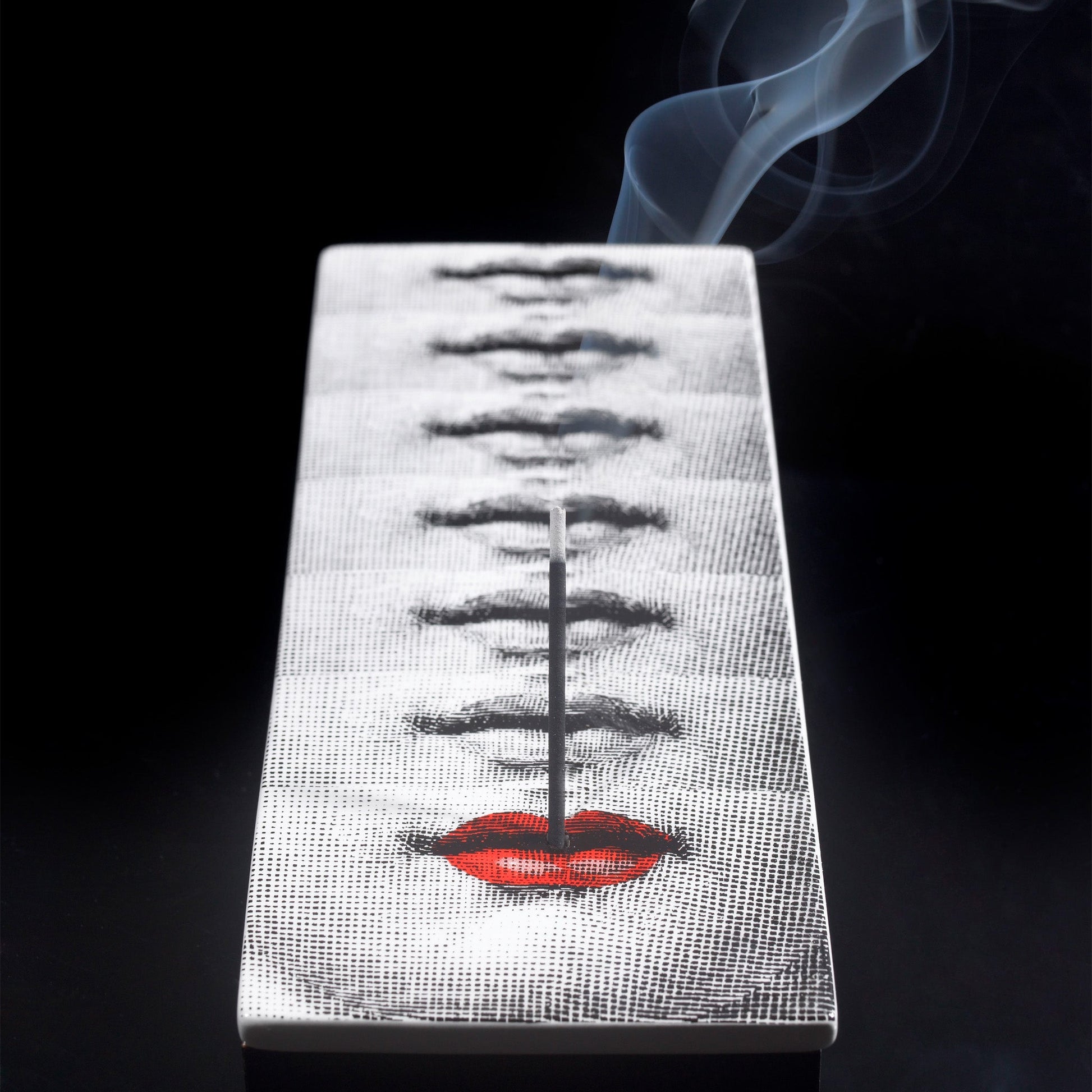 Fornasetti's Bacio Scented Incense Box brings the house’s witty style to any interior. Crafted from dark wood and ceramic and decorated with the lips of Italian opera singer Lina Cavaliera, it offers many hours of opulent fragrance from the Nippon Kodo-made Otto incense sticks within.