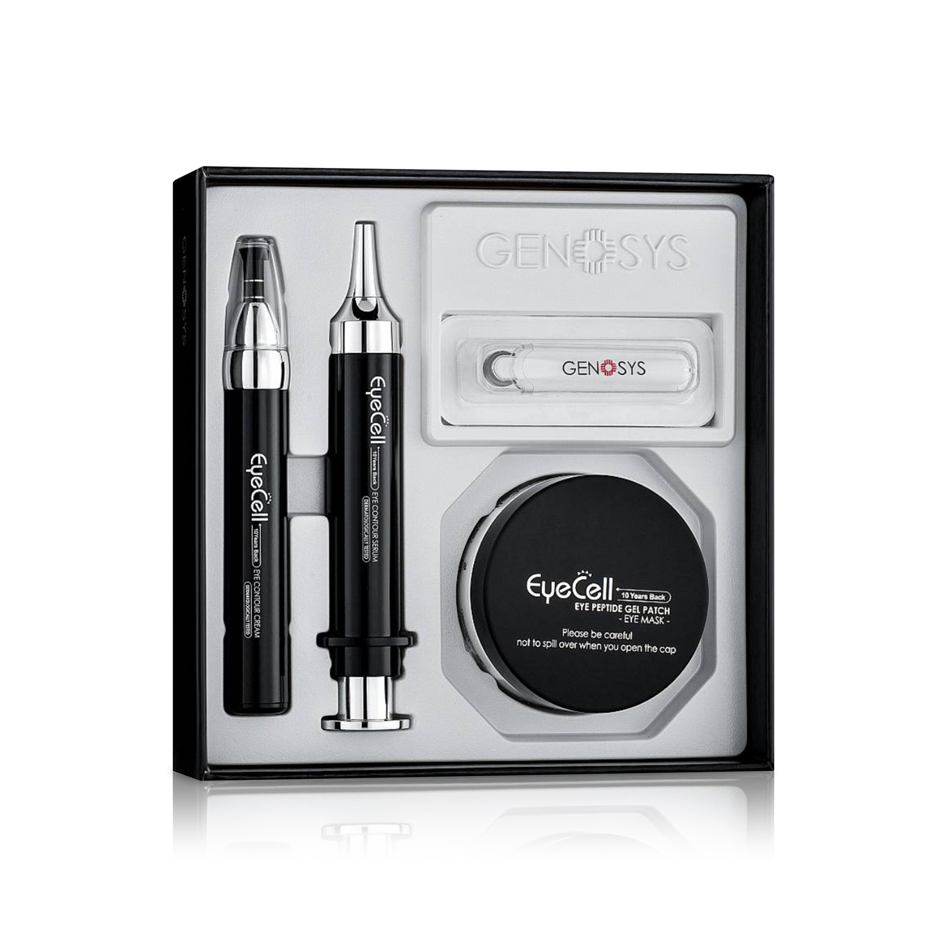 - This Genosys set includes: Eyecell contour cream/ An intensive eye area cream/ Eyecell contour Serum/ Eyecell peptide eye pactches/ Roller for eye area.