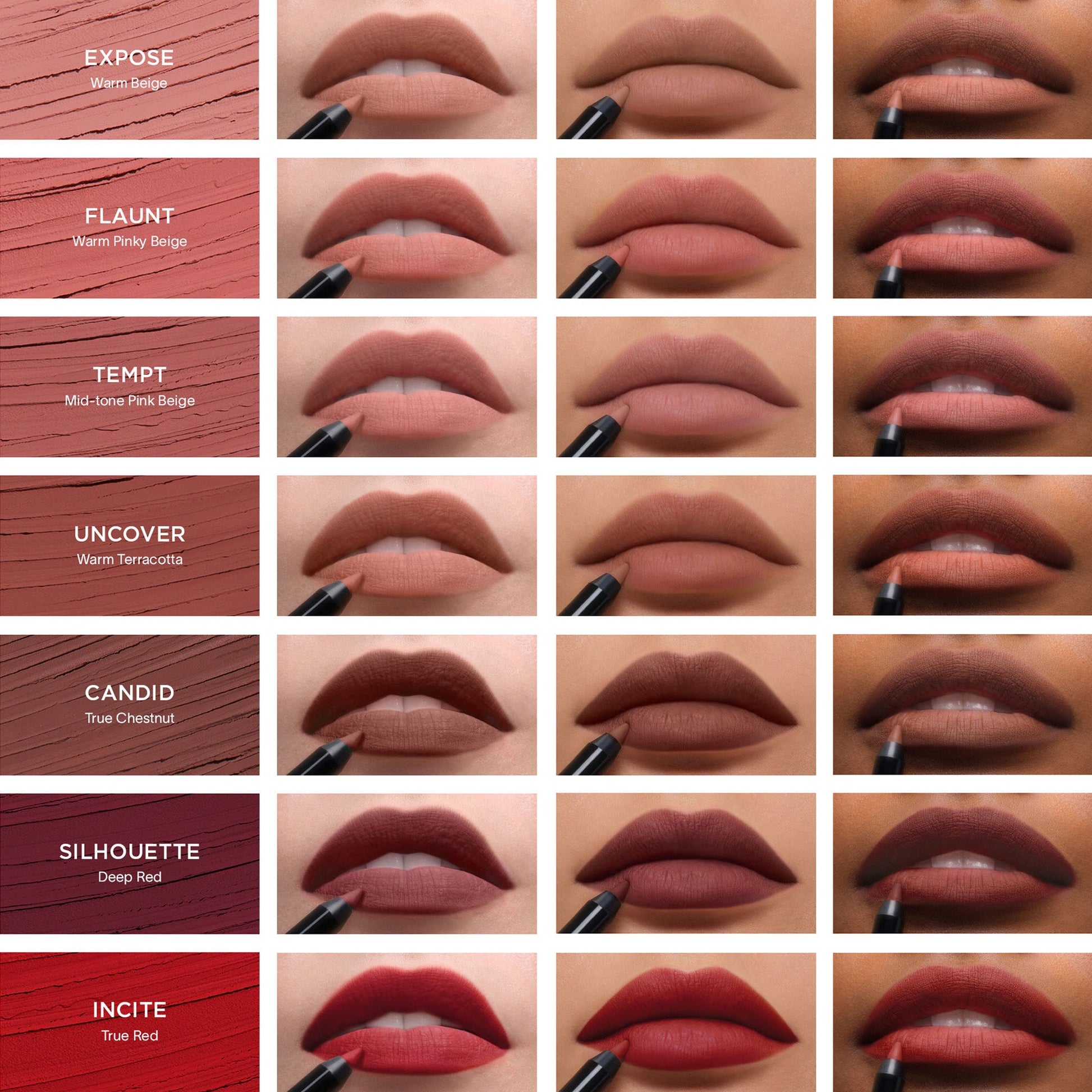 Hourglass' ultra creamy, transfer-resistant lip liner that defines, shapes, and sculpts lips for soft matte color that stays all day.