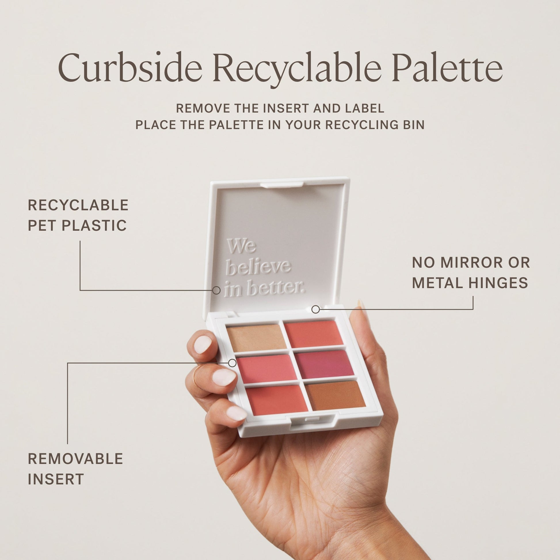ILIA's limited edition palette with three new and three bestselling Multi-Stick shades for a wash of color on cheeks and lips. This creamy, multi-use formula melts with the warmth of your skin for a fresh, foolproof veil of color anyone can wear. Mix, match, and layer the dewy and luminous shades to suit any mood or moment. The mirror-free palette is easily recyclable through your normal curbside service.