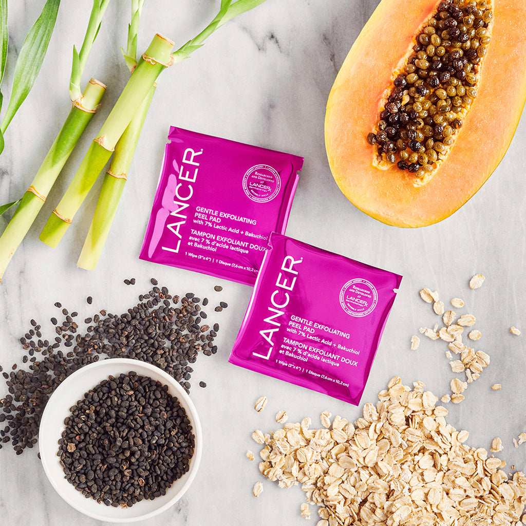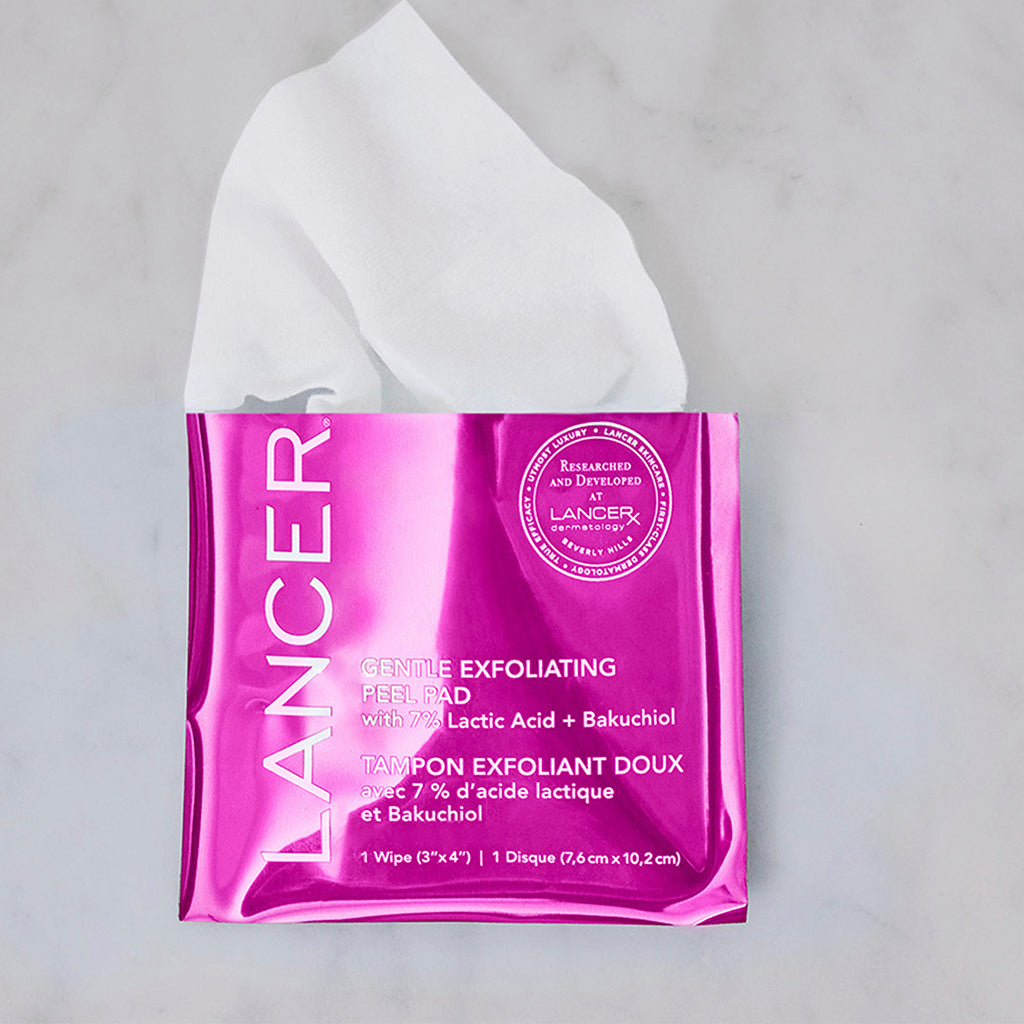 A gentle acid peel pad that resurfaces and brightens skin in a single step. Gentle Exfoliating Peel Pads are made from biodegradable bamboo and carry a blend of ingredients that help smooth, brighten and even skin tone while providing long-lasting anti-aging benefits.