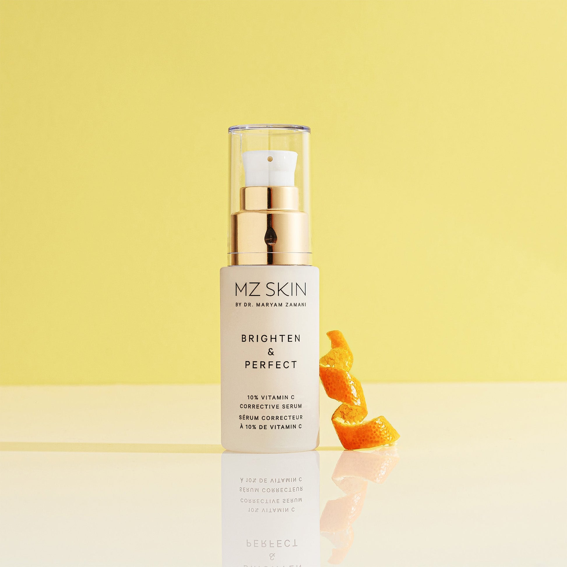 MZ Skin's Brighten & Perfect is a fast acting, ultra-targeted vitamin C serum combines a potent complex of actives and an optimal dosage of 10% stabilised Vitamin C. These address the visible effects of UV activated hyperpigmentation, age spots and reduce skin tone imperfections. As an antioxidant, vitamin C also creates a shield to protect against environmental aggressors, resulting in a strengthened, refined and brightened skin tone. The vitamin C serum also works deeper to help protect elasticity, stimulate collagen synthesis.
