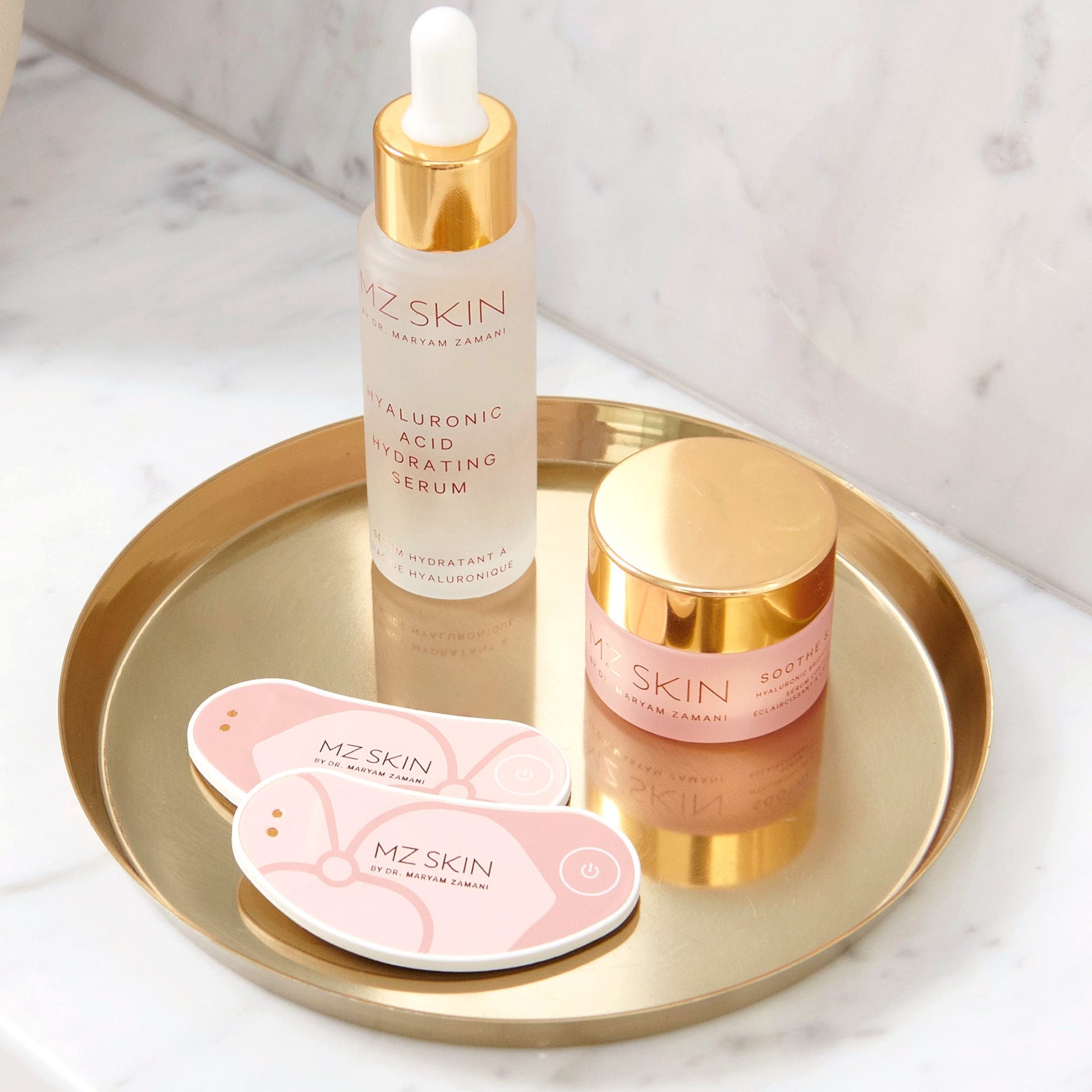 MZ Skin's first-to-market device combines active cosmetics with the power of LED for a supercharged eye-care routine that delivers targeted light-therapy to help reduce dark circles, puffiness and fine lines and wrinkles, under, and around the eyes.