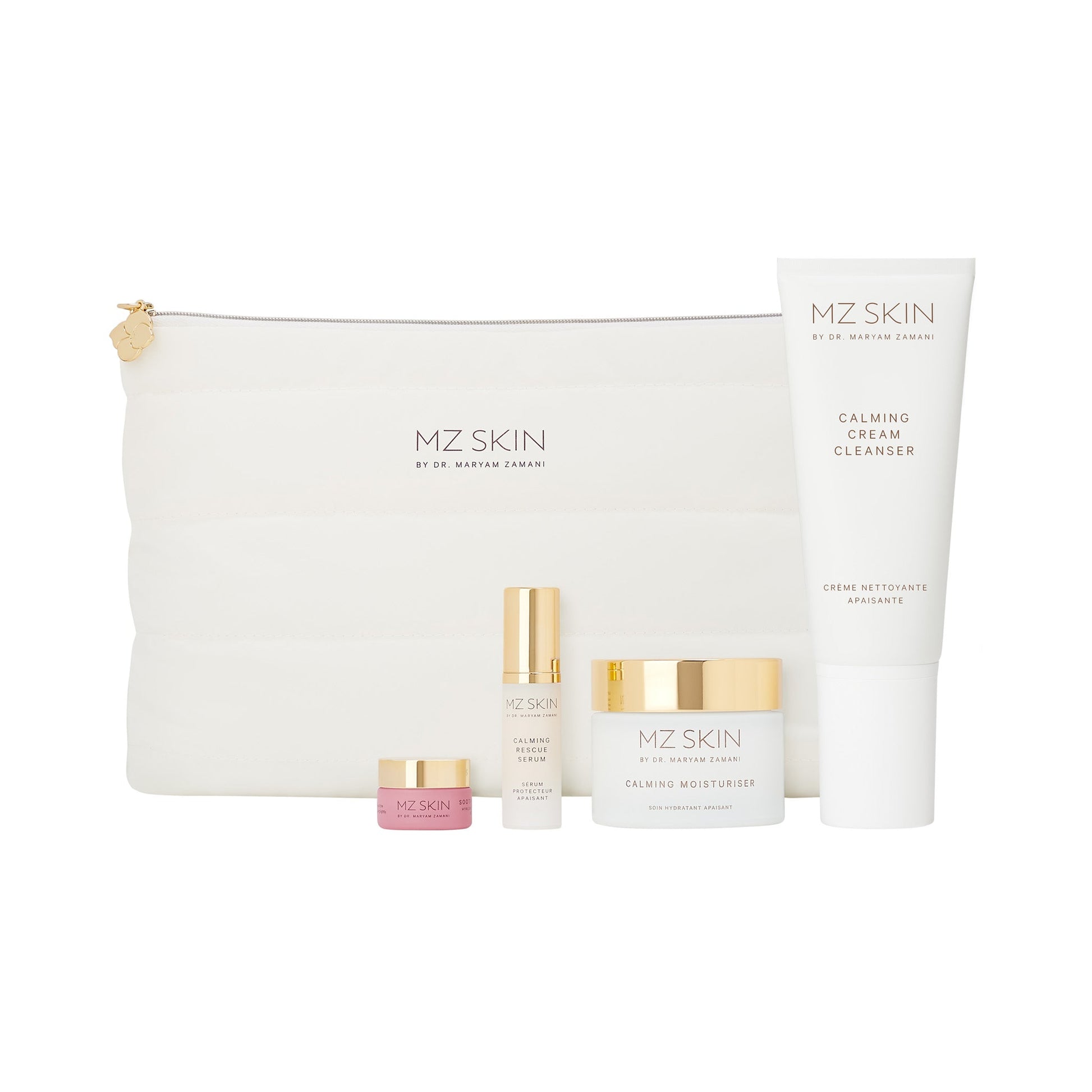 The Calming Discovery Set comes complete in an MZ SKIN toiletry bag, containing: