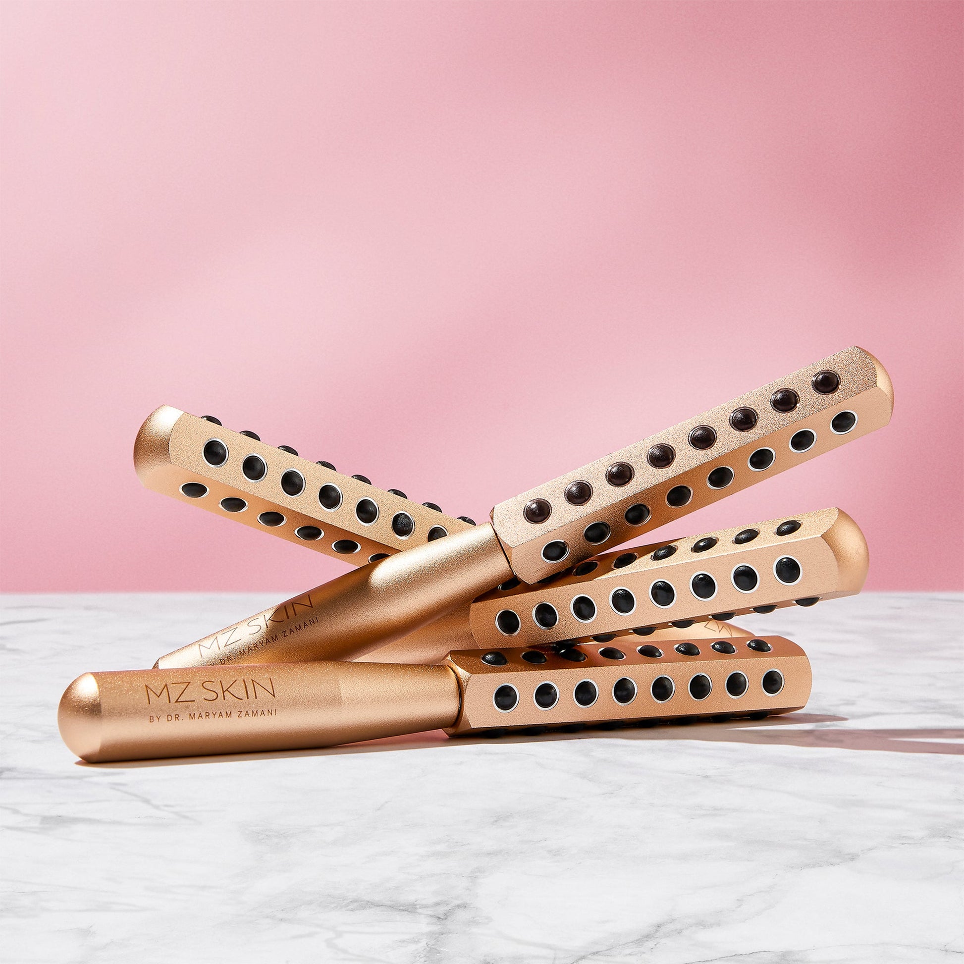 Tone and Lift – Driven by innovation, this facial roller utilises forward-thinking technology for skin that is revived, toned, and uplifted with overall improved facial contour and lymphatic drainage. The device is made with germanium, a key ingredient in activating and balancing the positive and negative ions responsible for ageing, simultaneously defending skin from surrounding environmental aggressors. Its added acupressure pods apply light pressure to stimulate the body’s natural self-curative abilities, resulting in skin that is less puffy, more even-toned and definitively radiant.