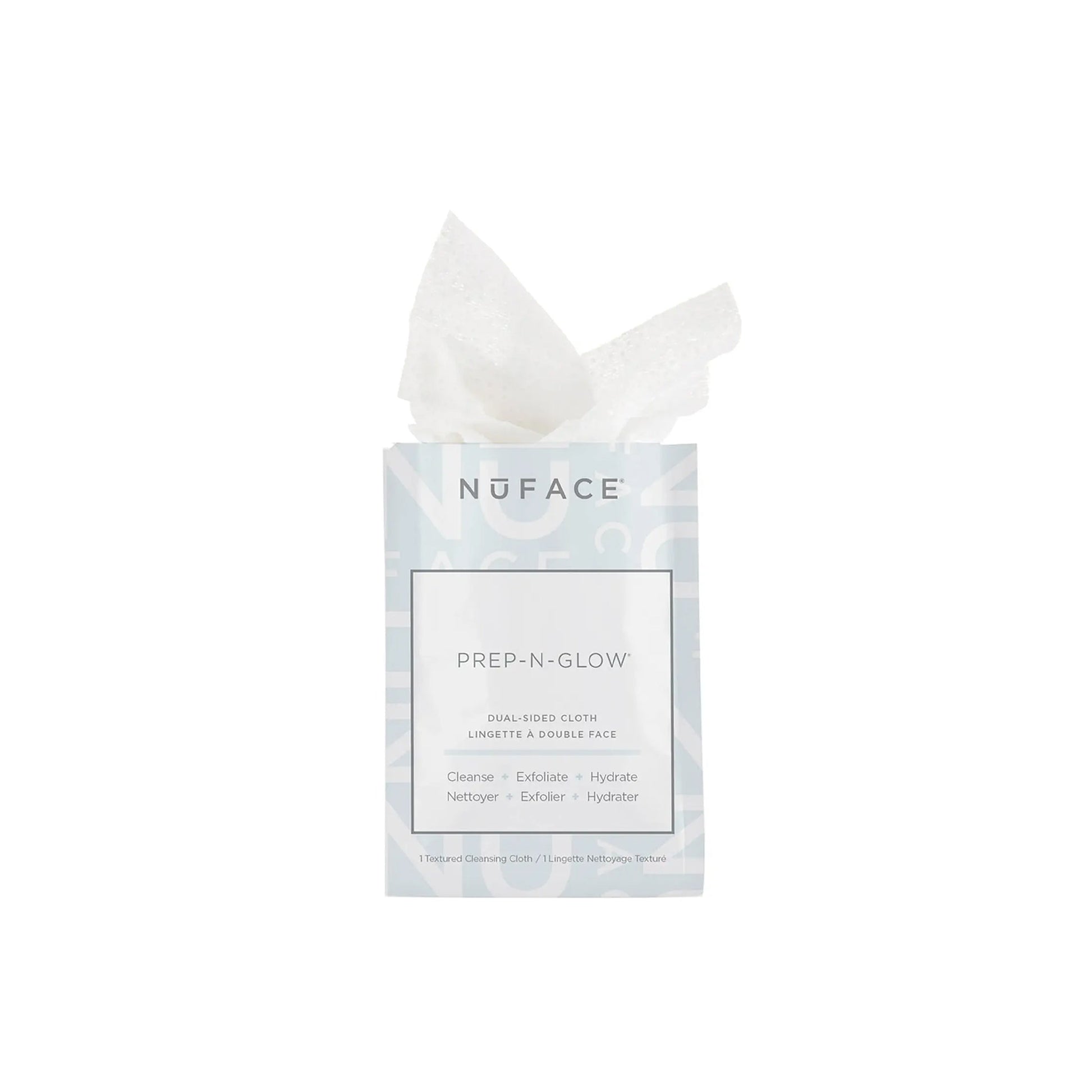 NuFace Prep-N-Glow are dual-sided cleansing cloths that cleanse, exfoliate and hydrate for beautifully refreshed and radiant skin.