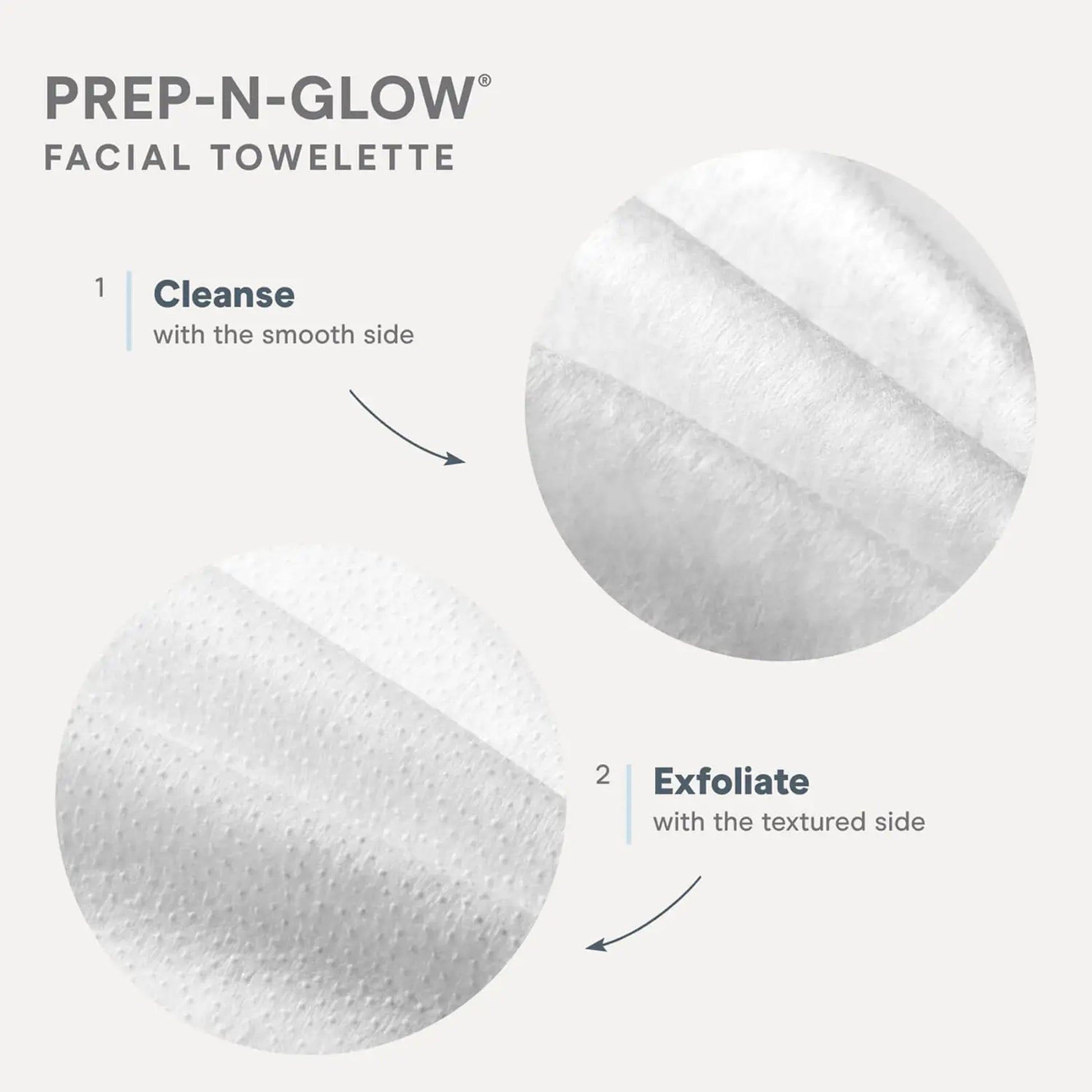 - Prep-N-Glow dual-sided cloths remove makeup, dirt, oil, and impurities with soft spunlace while the polishing micro-dots provide gentle exfoliation to brighten skin.