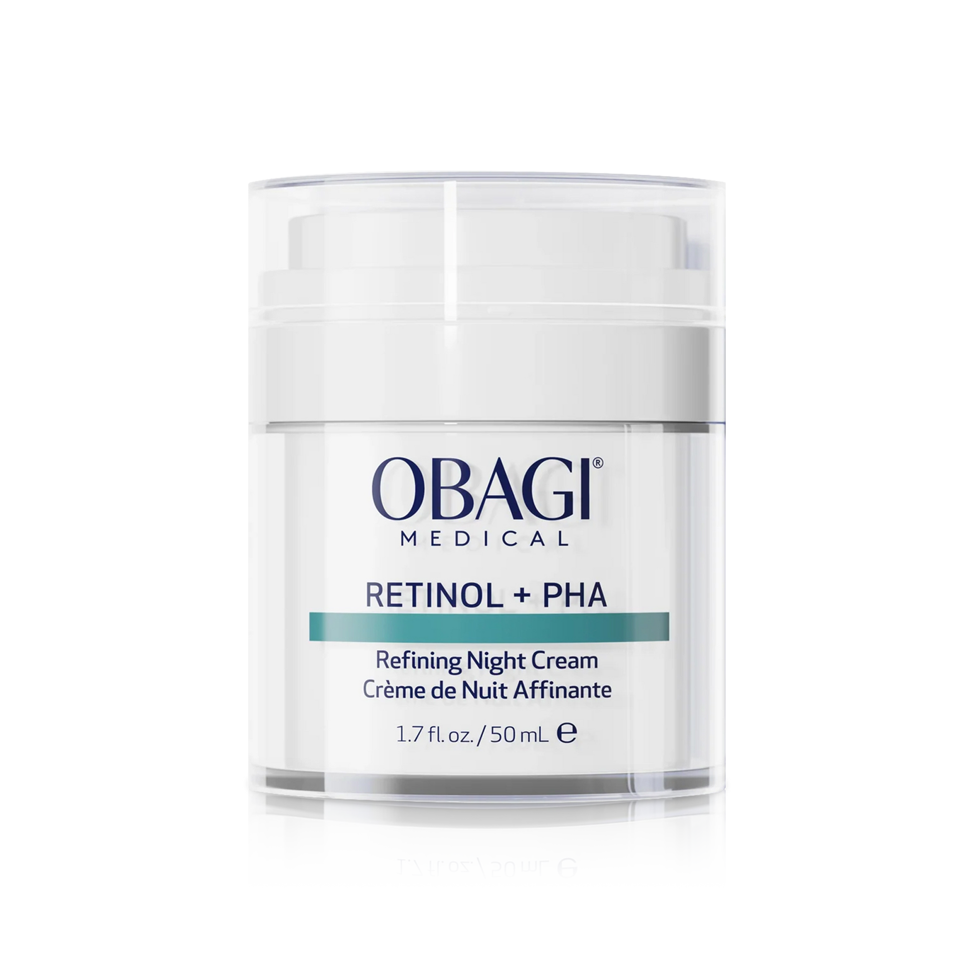 Obagi Retinol + PHA Refining Night Cream is a clinically proven overnight treatment designed to refine skin texture and tone while reducing the look of fine lines, wrinkles, and blemishes. Formulated with Entrapped Retinol powered by slow-release technology, it delivers retinol deep into the skin for optimized results, while Polyhydroxy Acid (PHA) provides gentle surface exfoliation. Enriched with eight nourishing ingredients, including shea butter extract, hyaluronic acid, and jojoba esters, this night cream hydrates as it works to resurface and renew. In just 4 weeks, skin appears smoother, clearer, and more even-toned.
