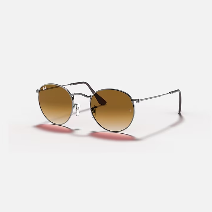 RAY-BAN ROUND FLAT LENSES Gunmetal & Light Brown Gradient Round Sunglasses For Men L
