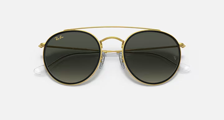 Ray-Ban Double Bridge Round Gold & Grey Sunglasses- Size 51