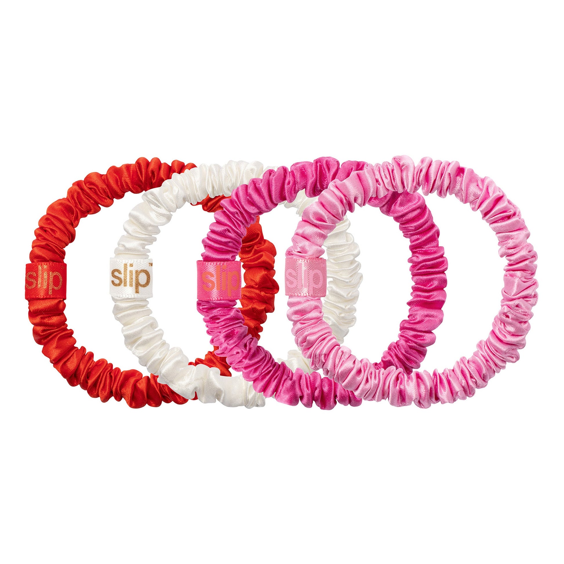 Includes: 1 x poppy / 1 x white / 1 x camellia / 1 x thistle pure silk skinny scrunchies.