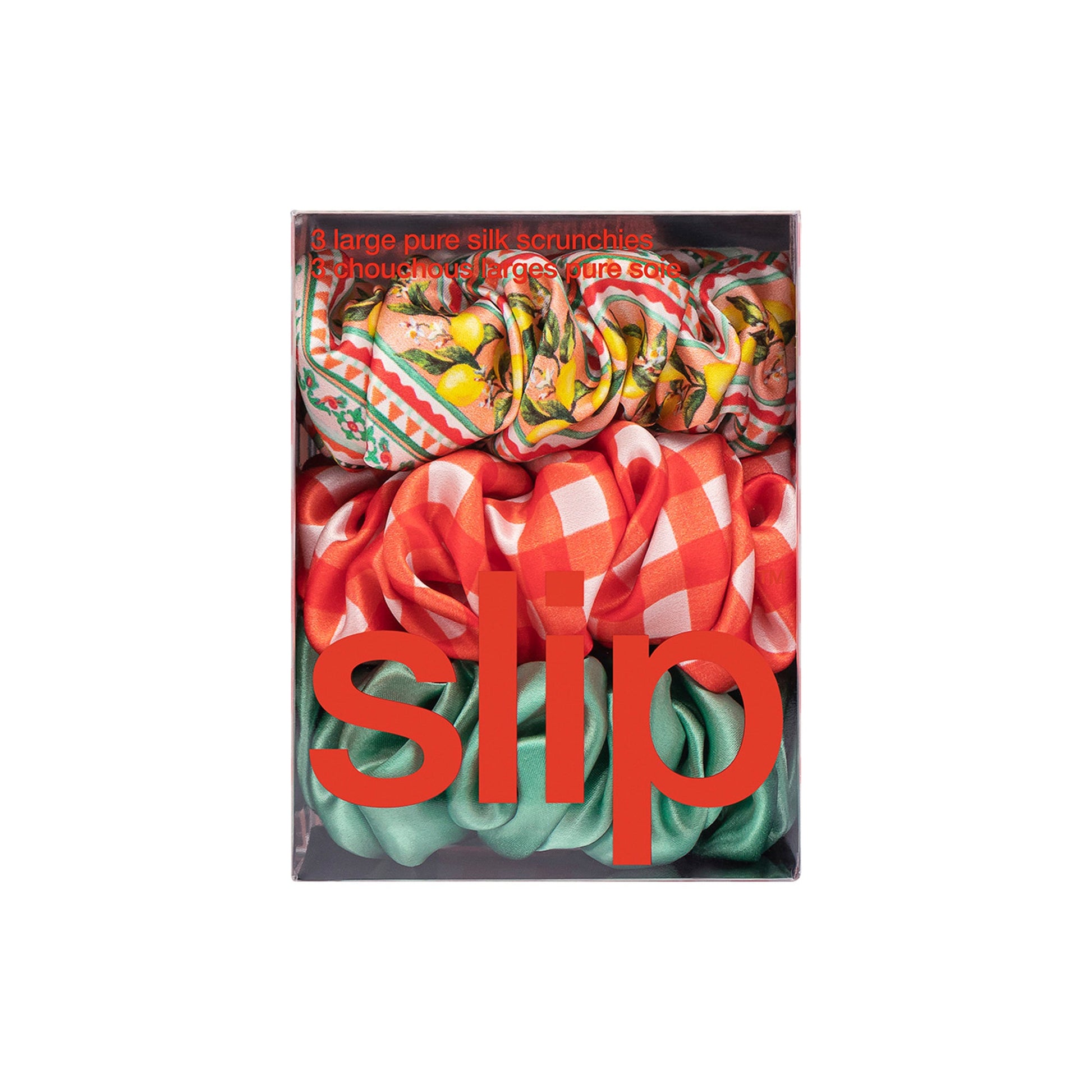 Includes: 1 x portofino / 1 x pizzeria / 1 x sage pure silk large scrunchies