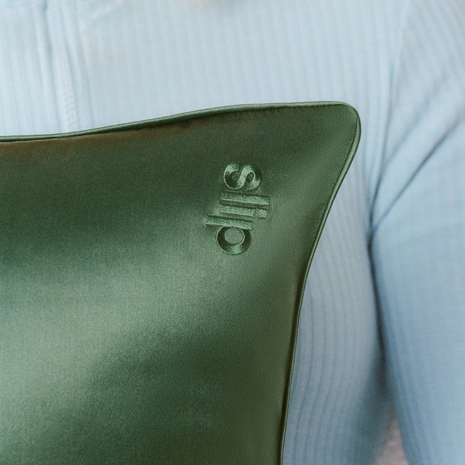 Includes: 1 x moss green pure silk queen pillowcase with moss green piping and invisible zipper closure (20" x 30" / 51cm x 76cm).