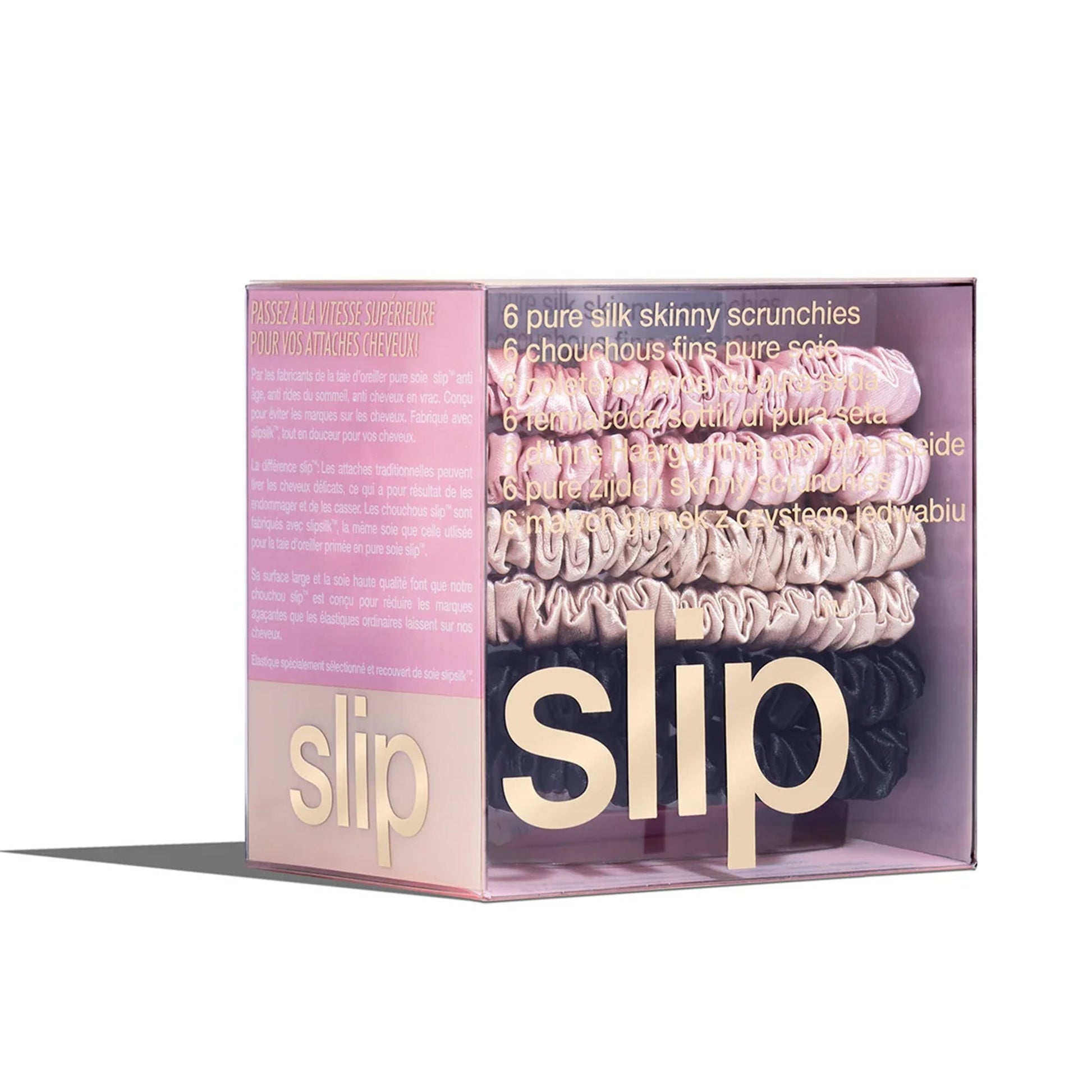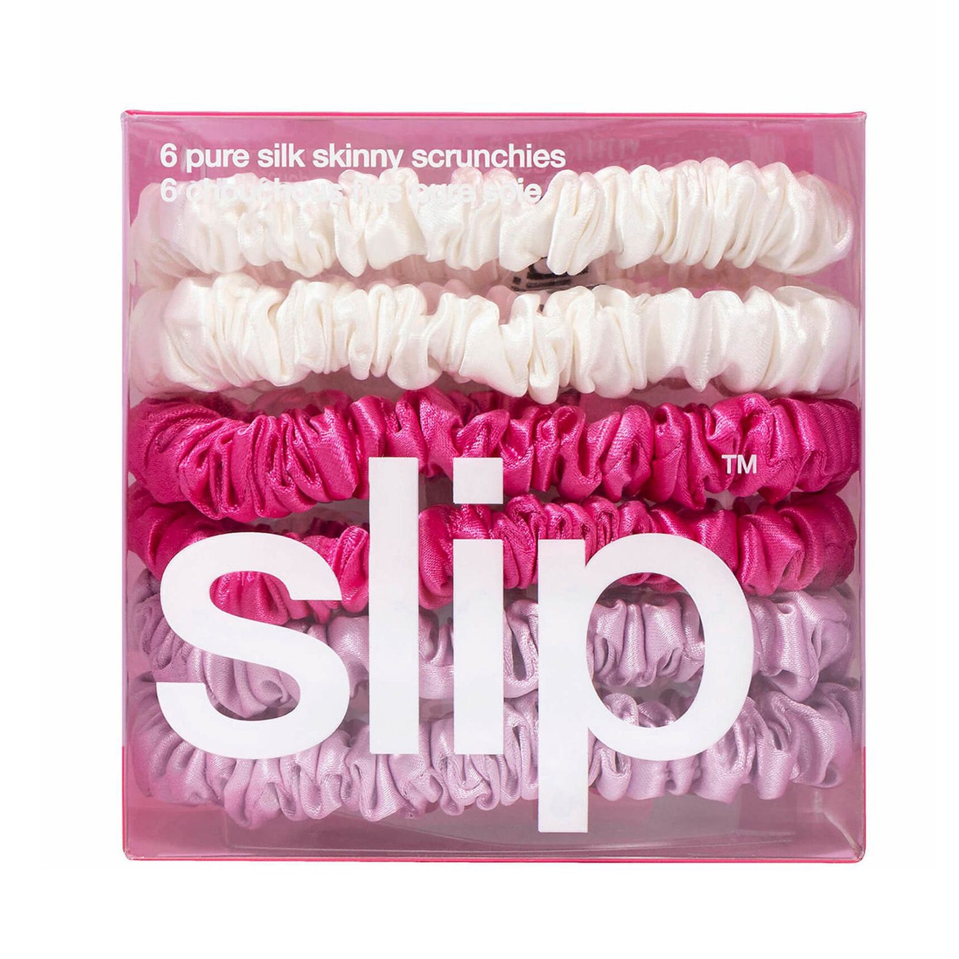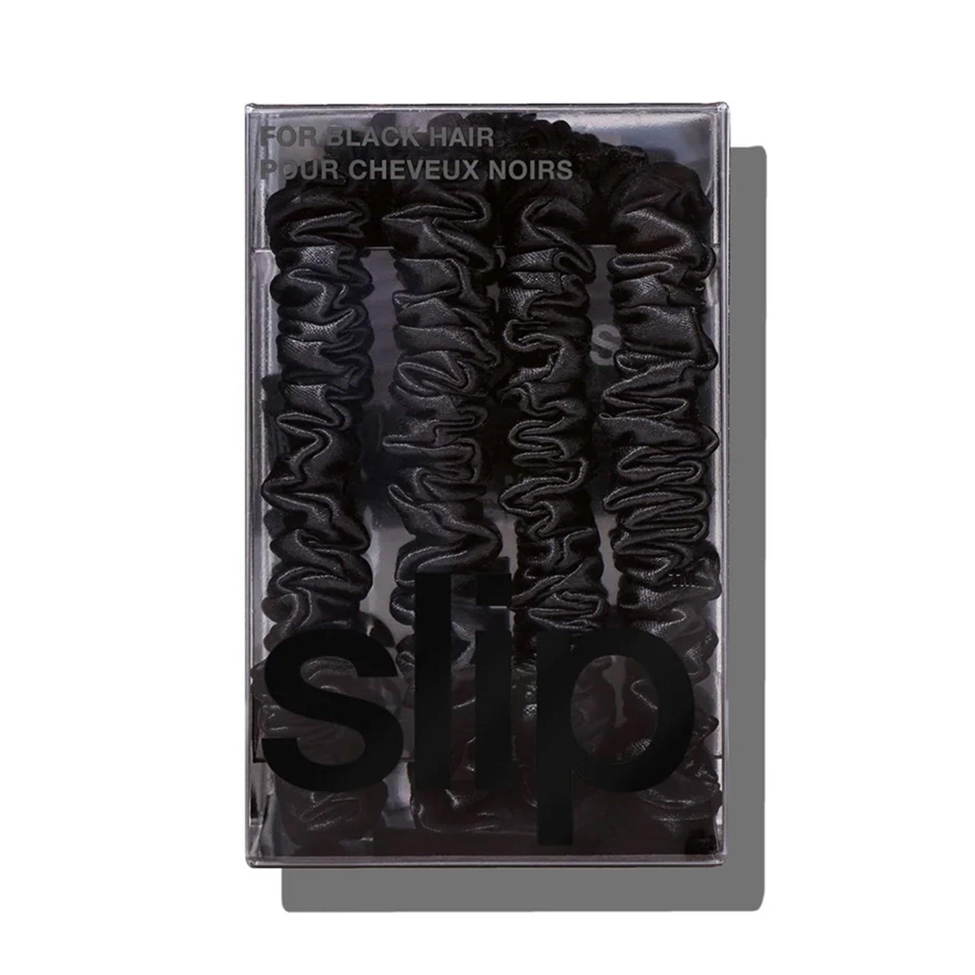- This pack includes six black small Slip-Slipsilk™ Skinny Scrunchies, providing you with a variety of options to match your outfit or mood. The slim design effortlessly wraps around your hair, avoiding any unwanted tugging or pulling, and leaving your hair crease-free.