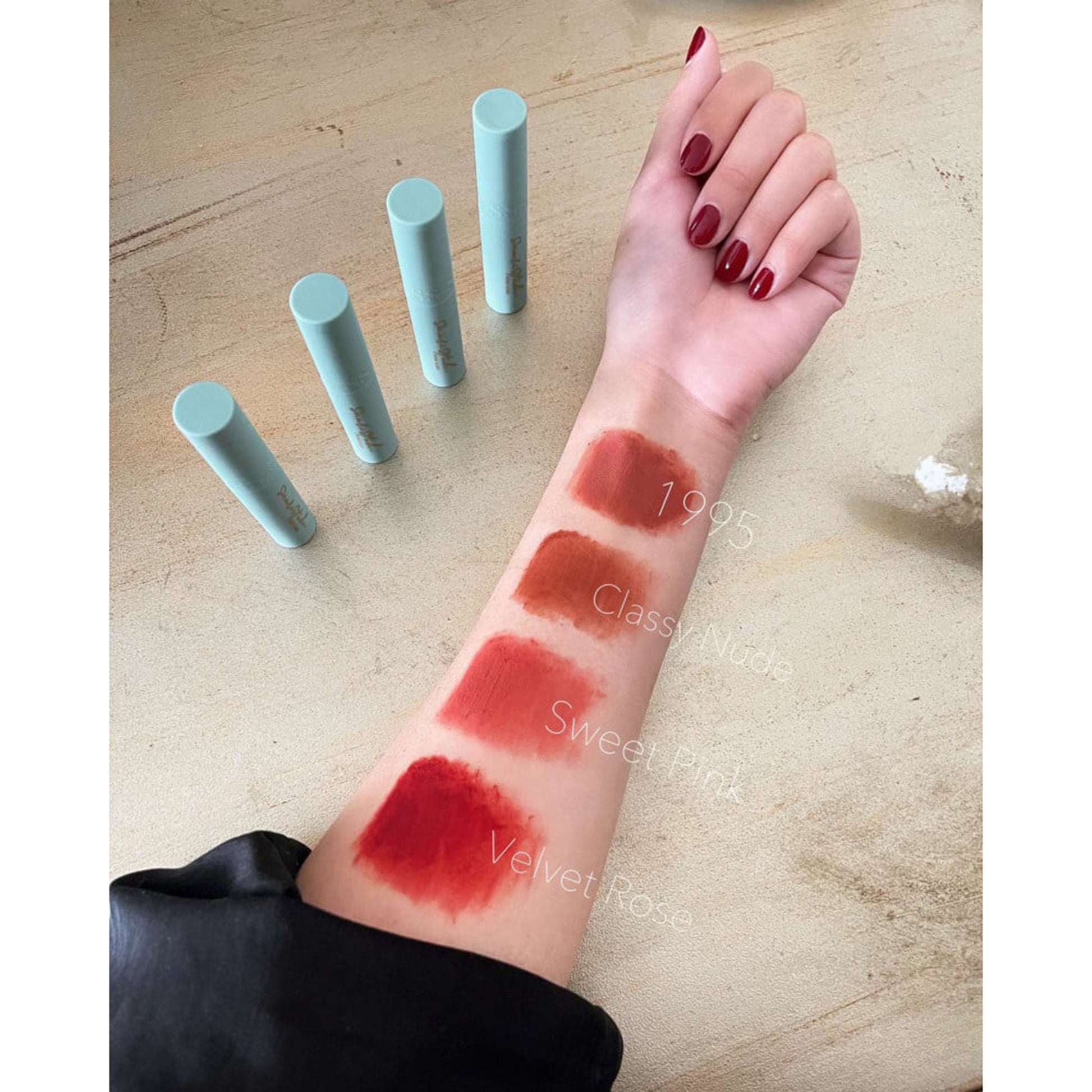 Smari Lip Matter in Velvet Rose offers a classic vintage red undertone, perfect for special occasions. Its creamy texture delivers high-pigment matte finishing, creating beautifully defined lips with lasting wear.