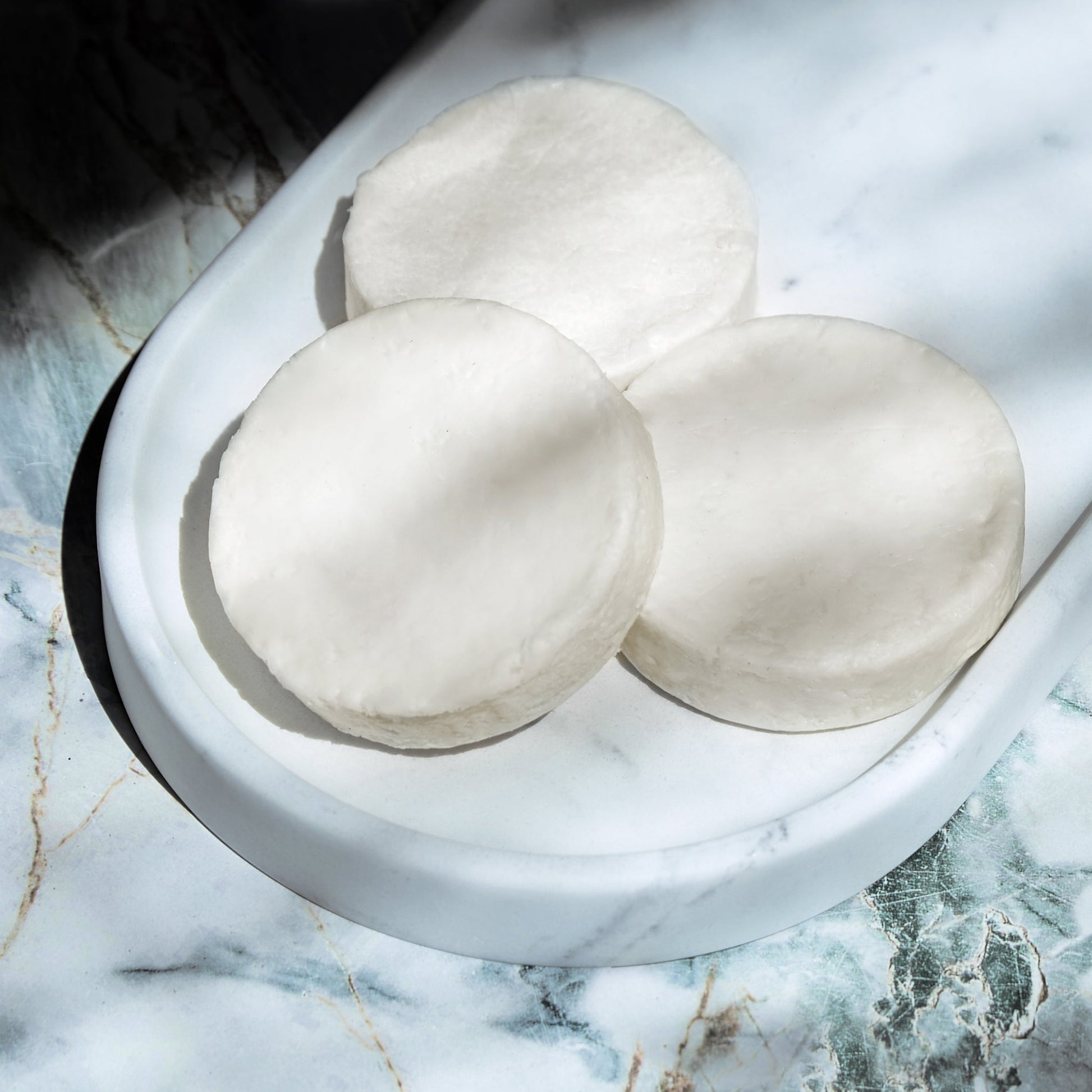 Wet the solid shampoo with water, work it between your hands to create a foam and apply it to wet hair.